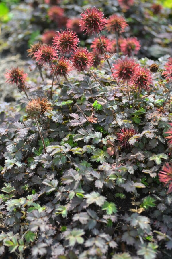 Acaena microphylla 'Kupferteppich', almindeligt kendt som fin tornnød, er en charmerende og stedsegrøn bunddækkende plante, der tilbyder et væld af bronzefarvede blade og delikate, rødlige blomster. Denne lavtvoksende sort af Acaena er ideel til at skabe en levende kant i haven eller som en del af en gruppeplantning.