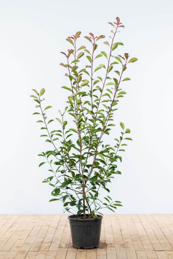 Photinia × fraseri 'Red Robin' hæk, også kendt som glansmispel, er en stedsegrøn plante, der er populær i mange haver. Denne hæk er kendt for sine smukke røde og grønne blade, der giver et farverigt udtryk året rundt. Bladene er glatte og skinnende, hvilket tilføjer en ekstra dimension til plantens udseende. Glansmispel trives godt i både skygge, halvskygge og sol, hvilket gør den alsidig i forskellige haveindretninger. Denne hæk vokser med en hastighed på 30-50 cm om året, hvilket gør den til en moderat hurtigvoksende plante. Med den rette pleje og gødning kan væksten optimeres yderligere. Den voksne højde af Photinia × fraseri 'Red Robin' afhænger af, hvor ofte og hvordan den bliver beskåret. Regelmæssig beskæring kan hjælpe med at opretholde den ønskede højde og form, hvilket er vigtigt for at bevare dens oprette og tætte vækstform. Glansmispel red robin har en opadgående vækstform og er tæt forgrenet, især når den bliver beskåret regelmæssigt. Dette gør den til en ideel hæk, der kan give en moderat tæt afskærmning. Selvom den ikke er fuldstændig uigennemsigtig, giver den stadig en god grad af privatliv i haven. For dem, der ønsker en stedsegrøn hæk, kan stedsegrøn hæk være et godt valg. Med sin kombination af farve, vækst og tilpasningsevne er Photinia × fraseri 'Red Robin' en fremragende tilføjelse til enhver have.