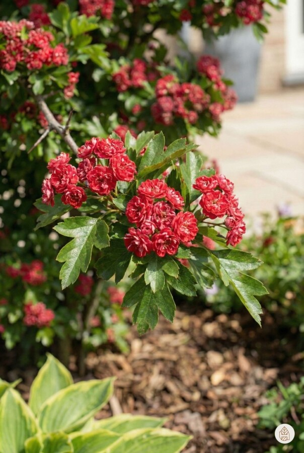 • Crataegus tilbyder en levende farvepalet med sin røde og lyserøde blomster i maj og juni, og tilføjer et romantisk touch til enhver have.