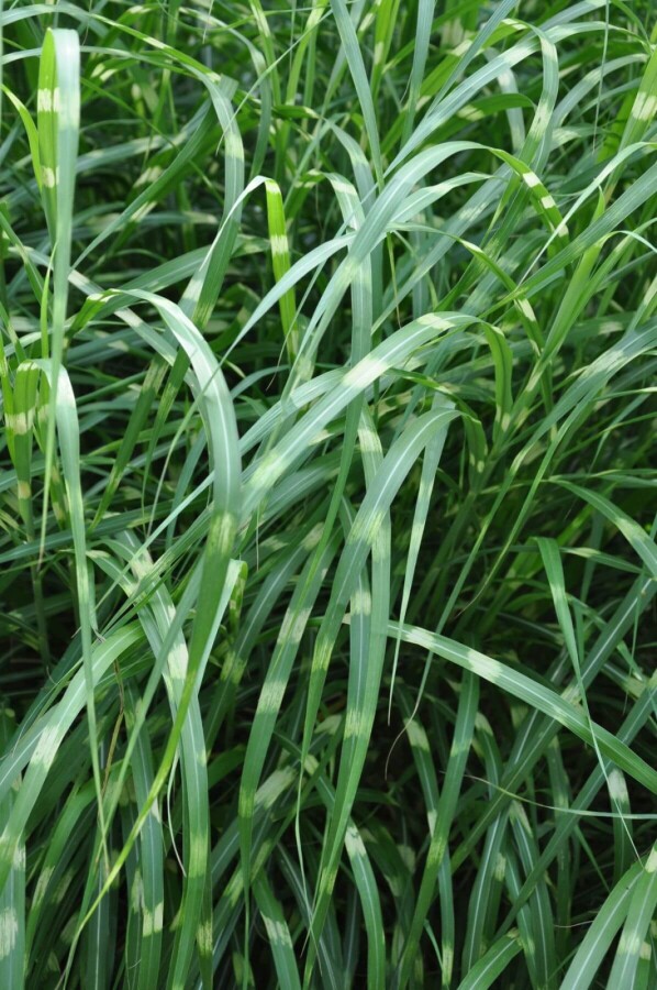 Dens slanke blade bærer et karakteristisk mønster af grønne og gule striber, hvilket giver en levende kontrast mod haverummets andre elementer. Blomstrer i efteråret tilføjer et blødt, sølvgråt element, som bidrager til plantens imponerende højde på op til 2 meter.