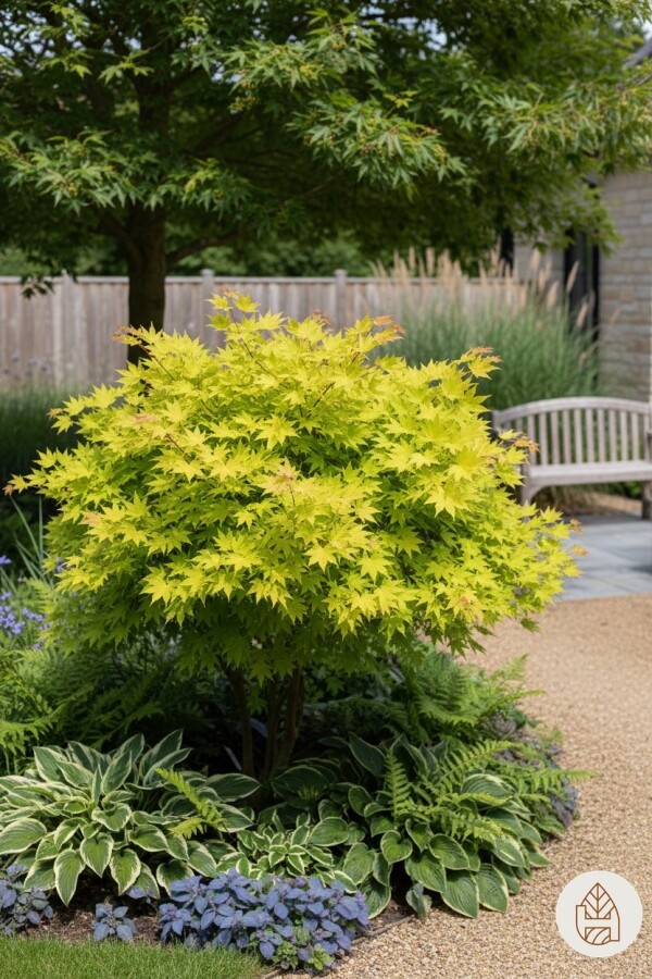 Acer shirasawanum 'Jordan' er også velegnet til små haver på grund af dens langsomme vækst og minimale beskæringsbehov. Overvej at