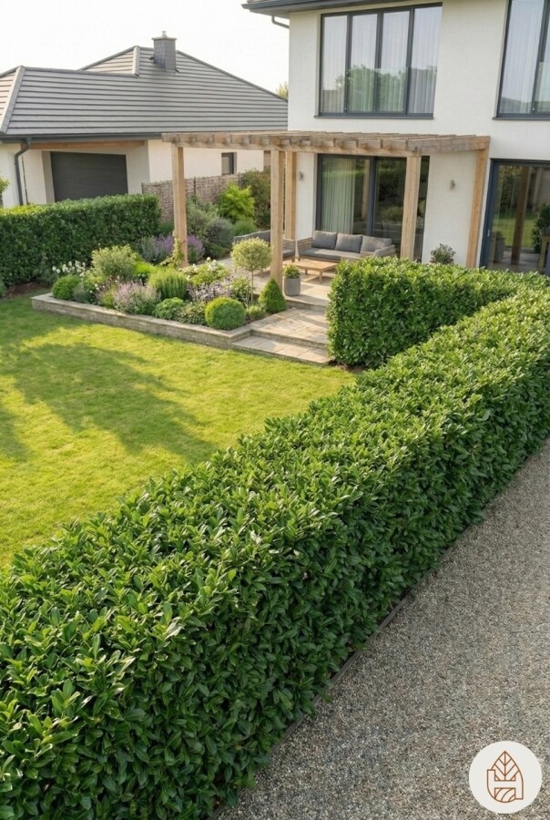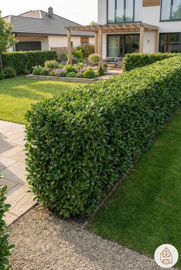 De Prunus laurocerasus 'Etna' hæk er en populær plantevalg for dem, der ønsker en tæt og privat hæk.