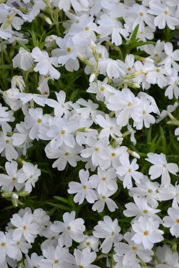 Phlox subulata 'White Delight' blomstrer i april, maj og juni.