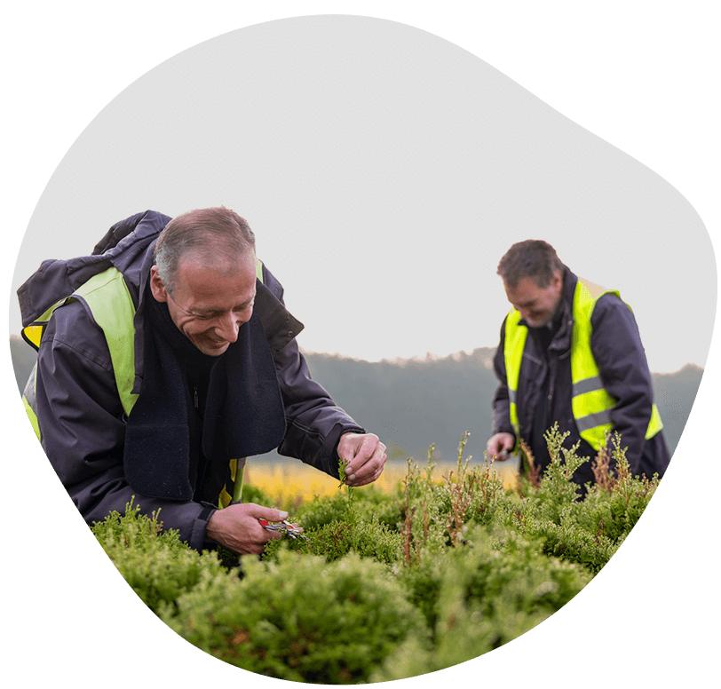 Vi dyrker f.eks. mange af vores planter på vores egne arealer. Vores personale er involveret i alle faser, fra dyrkning af kimplanter til udplantning, og fra flytning af planter til beskæring af dem. Hvad angår de andre produkter i vores sortiment, samarbejder vi med andre planteskoler, der opretholder de samme kvalitetsstandarder. Det betyder, at vi altid kan levere den højeste kvalitet til vores kunder, uanset sort.