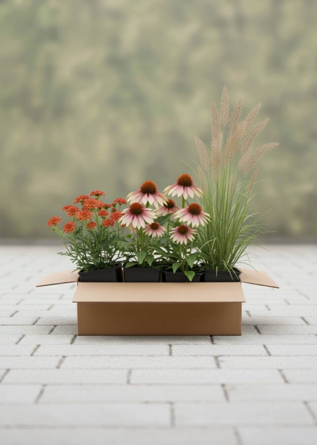 Bring varme og farve ind i din have med Sensommernsglød Mix. Denne omhyggeligt sammensatte færdigbed giver en lang blomstring fra sensommer og ind i efteråret, med spændende kontraster mellem blomster og prydgræs. Ideel til solrige placeringer og nem at passe.