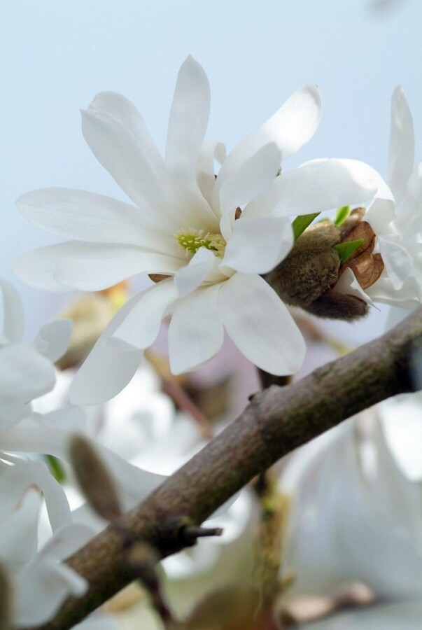 - Magnolia stellata blomstrer i marts og april med smukke hvide blomster, der tiltrækker både sommerfugle og bier. Blomsterne er også duftende.