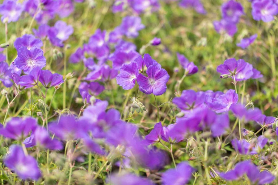 - Geranium pratense 'Orion' blomstrer fra maj til september med smukke blå blomster.